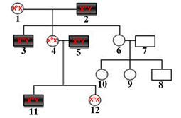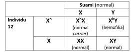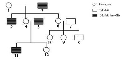 Di bawah ini merupakan diagram keturunan sebuah keluarga dengan kelainan genetik hemofilia.