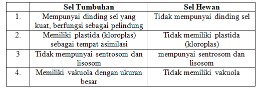 Di bawah ini yang benar tentang perbedaan antara sel hewan dengan sel tumbuhan adalah ....