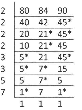 Di rumah tersedia 80 buah jeruk, 84 buah apel, dan 90 buah rambutan. Jika ketiga jenis buah tersebut akan dibuat parcel dengan bagian yang sama, komposisi dalam tiap parcel yang tepat adalah...