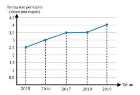 Diagram berikut ini menggambarkan pendapatan per kapita di suatu daerah dari tahun ke tahun.