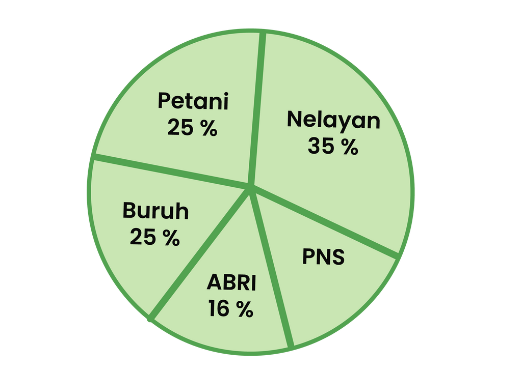 Diagram berikut menunjukkan mata pencaharian penduduk desa Sukamaju yang berjumlah 12.000 orang.