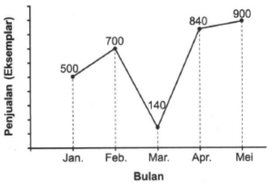 Diagram berikut menyajikan data penjualan buku selama lima bulan di toko Pin