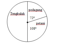 Diagram lingkaran berikut ini merupakan pekerjaan setiap kepala keluarga di desa Lurampe :