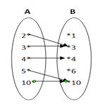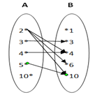 Diagram panah yang menunjukkan relasi “ faktor dari “ himpunan A = { 2, 3, 4, 5, 10 } ke himpunan B = { 1, 3, 4, 6, 10 } adalah.…