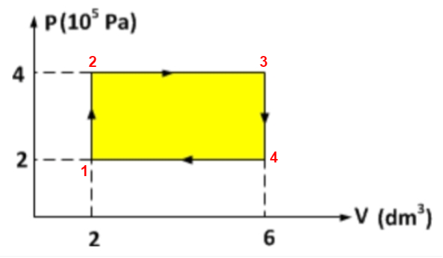 Diagram PV di bawah ini melukiskan proses siklus yang dialami oleh gas ideal dengan keadaan awal seperti pada gambar. Tentukanlah usaha yang dilakukan oleh gas itu dalam satu siklus!
