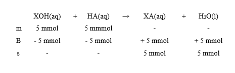Diana mentitrasi 50 mL larutan basa lemah XOH () 0,1 M diberi 2 tetes indikator metil merah ungu dengan trayek perubahan warna dari ungu menjadi hijau, kemudian dititrasi oleh larutan asam kuat HA 0,1 M. Penambahan 50 mL larutan HA akan menghasilkan campuran berwarna hijau seulas. pH campuran yang dihasilkan saat campuran berwarna hijau seulas adalah .... (log5 = 0,7)