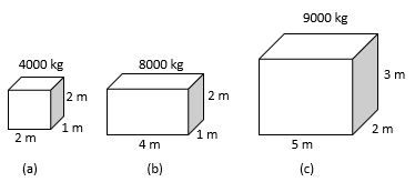 Diberikan 3 buah balok dengan ukuran dan massa yang berbeda-beda seperti gambar berikut.