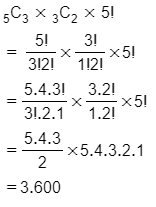 Diberikan 5 huruf konsonan dan 3 huruf vokal. Dari huruf tersebut dibuat kata sandi yang terdiri dari 5 huruf dengan 3 huruf konsonan dan 2 huruf vokal. Banyaknya kata sandi yang dapat dibuat adalah ….