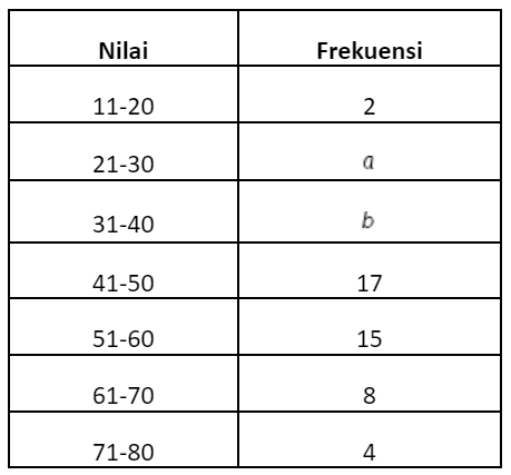 Jika modus dari data di atas adalah 48 maka nilai dan adalah ....
