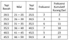Bentuk ogive positif dari data di atas adalah ....