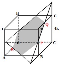 Diberikan kubus ABCD.EFGH dengan panjang rusuk 4k, titik-titik P, Q, dan R masing-masing titik tengah FB, FG, dan AD. Luas penampang irisan bidang yang melalui P, Q, R, dan kubus ABCD.EFGH adalah….