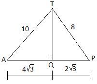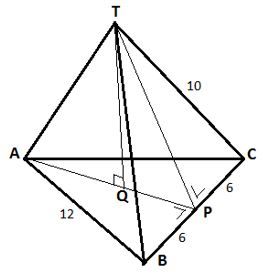 Diberikan limas T.ABC dengan AB = AC = BC = 12 cm dan TA = TB = TC = 10. Jarak titik T ke bidang ABC adalah...