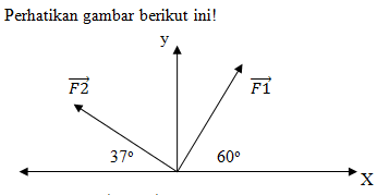 Diketahui = = 15 N. Jika gaya diuraikan ke sumbu-x, dapat disimpulkan bahwa komponen vektor F1 dan F2 adalah sebesar….