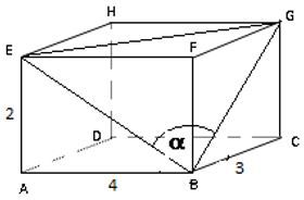 Diketahui ABCD EFGH adalah sebuah balok. Perbandingan panjang, lebar, dan tinggi adalah 4, 3 ,dan 2. Jika a adalah sudut EBG, maka