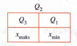 Diketahui berturut-turut menyatakan statistik minimum, statistik maksimum, kuartil pertama, kuartil kedua dan kuartil ketiga dari suatu kumpulan data. Pernyataan berikut ini benar untuk kumpulan data tersebut, kecuali...