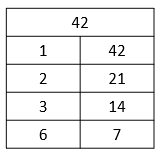 Faktor dari 42 adalah 1, 2, 3, 6, 7, 14, 21, dan 42.