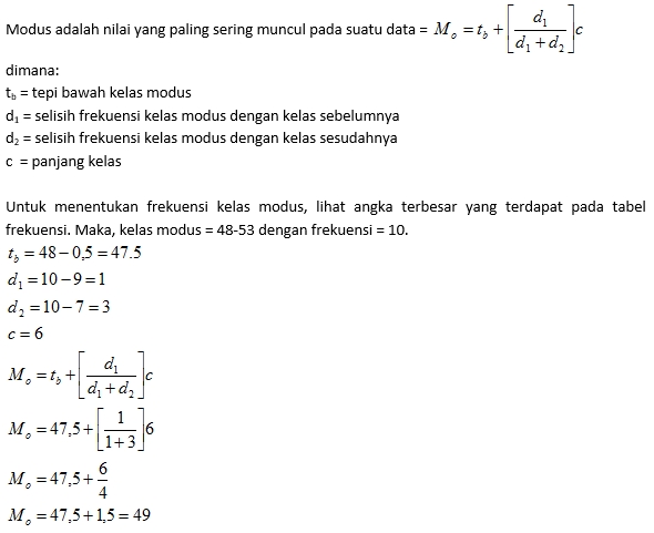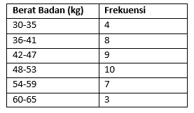 Diketahui data berat badan siswa kelas XII. Modus data berat badan siswa kelas XII IPS 1 adalah ….