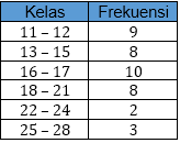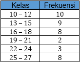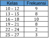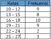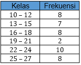 Jika data penelitian tersebut disajikan dalam tabel distribusi frekuensi, maka tabel yang benar adalah ….