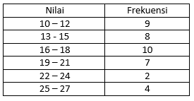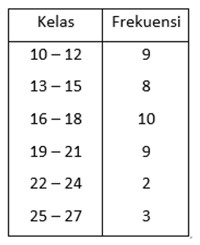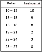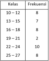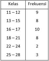 Jika data penelitian tersebut disajikan dalam tabel distribusi frekuensi, maka tabel yang benar adalah …
