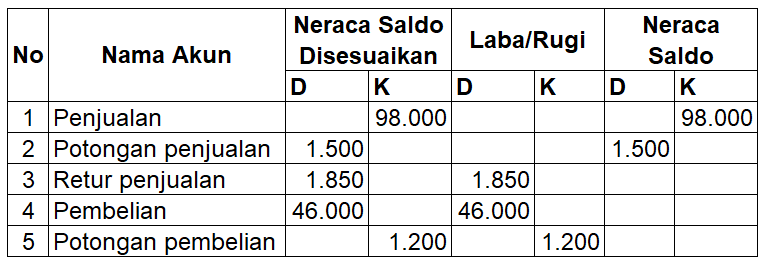 Data tersebut dicatat dalam kertas kerja sebagai berikut (dalam ribuan rupiah) .