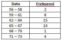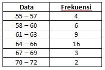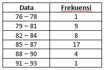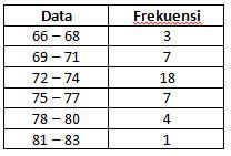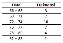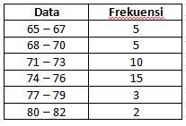 Jika data nilai di atas disajikan dalam tabel distribusi frekuensi, maka tabel yang benar adalah…