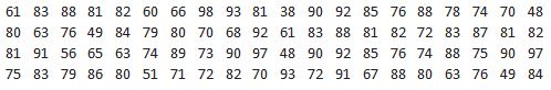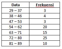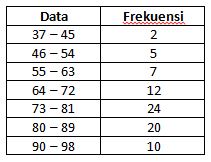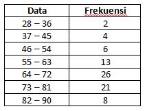 Jika data nilai di atas disajikan dalam tabel distribusi frekuensi, maka tabel yang benar adalah…