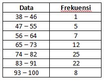 Diketahui data nilai ujian Matematika dari suatu kelas.
