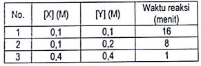 Diketahui data percobaan penentuan orde reaksi sebagai berikut.