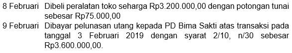 Diketahui data transaksi UD Perkasa bulan Februari 2019 sebagai berikut: