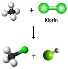 Nilai perubahan entalpi untuk reaksi pembentukan 0,1 mol gas metil klorida () dari gas metana dan gas klorin menghasilkan produk samping gas asam klorida adalah ....