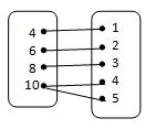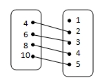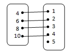 Diketahui himpunan A = {4, 6, 8, 10} dan B = {1, 2, 3, 4, 5}. Diagram panah yang menunjukkan fungsi himpunan A ke himpunan B dengan relasi “dua kali dari” adalah….