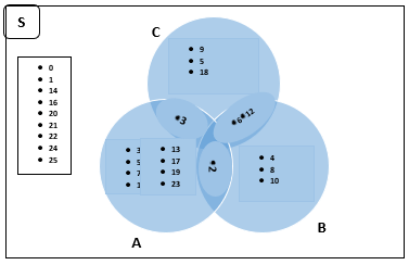 S = {Bilangan cacah hingga 25}.