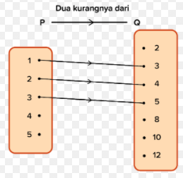 Diketahui himpunan , gambarlah diagram anak panah yang menunjukan relasi "dua kurangnya dari"