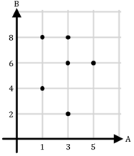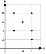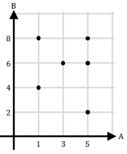 Diketahui himpunan pasangan berurutan untuk relasi dari himpunan A = {1, 3, 5} ke himpunan B = {2, 4, 6, 8} adalah {(1, 4), (1, 8), (3, 6), (5, 2), (5, 6), (5, 8)}. Diagram kartesius yang menyatakan relasi tersebut adalah ....