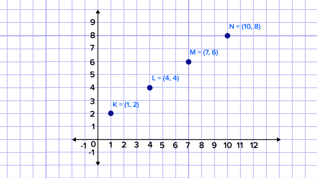 Diketahui koordinat titik K(1, 2), L(4, 4), M(7, 6) dan N(10, 8).