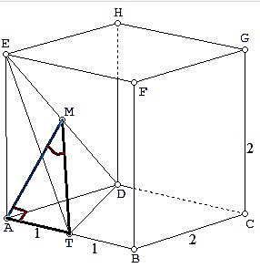 Diketahui kubus ABCD.EFGH dengan rusuk 2 cm. Jika titik T adalah titik tengah garis AB maka sinus sudut antara bidang ETD dan bidang ADHE adalah…