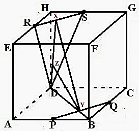 Diketahui kubus ABCD.EFGH dengan rusuk 4 cm. Jika titik P, Q, R, dan S masing-masing adalah titik tengah dari rusuk AB, BC, EH, dan GH maka jarak dari garis PQ ke bidang DRS adalah…