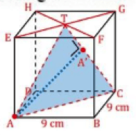 Diketahui kubus ABCD.EFGH dengan rusuk 9 cm. Jika titik T terletak pada pertengahan garis HF. Jarak titik A ke garis CT adalah...(Soal UN 2013)