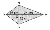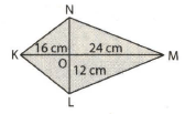 Diketahui layang-layang KLMN dengan panjang KO = 16 cm, LO = 12 cm, dan MO = 24 cm seperti pada gambar di bawah ini!