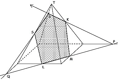 Diketahui limas segiempat T.ABCD. Titik K, L, dan M masing-masing titik tengah sisi TC, AB, dan BC. Bidang yang melalui titik K, L, dan M akan berbentuk…