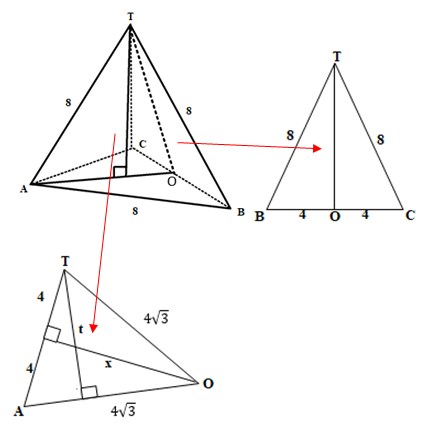 Diketahui limas segitiga beraturan T.ABC dengan panjang rusuk 8 cm. Jarak titik T ke ABC adalah....