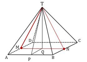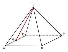 Diketahui limas T.ABCD dengan alas berbentuk persegi. Rusuk tegak 10 cm dan rusuk alas 8 cm. Jika titik M adalah titik tengah rusuk AD maka jarak garis TM ke garis AB adalah …. cm