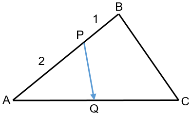Diketahui , P membagi AB dengan dan Q titik tengah AC. Jika dan , maka ...