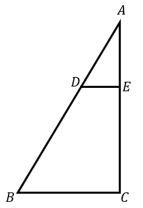Diketahui pada segitiga ABC dengan siku-siku di C, dibuat suatu garis DE yang sejajar dengan BC, seperti pada gambar di bawah ini.