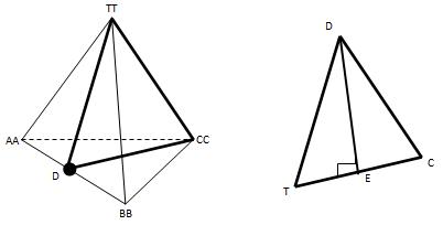 Diketahui panjang rusuk bidang empat beraturan T.ABC adalah 8 cm. Jika D Pada AB dengan AD=DB maka jarak antara titik D ke garis CT adalah….