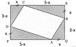 Diketahui persegi panjang PQRS seperti pada gambar dengan panjang 5 cm dan lebar 3 cm. Agar luas ABCD mencapai nilai minimum, luas daerah yang diarsir adalah....