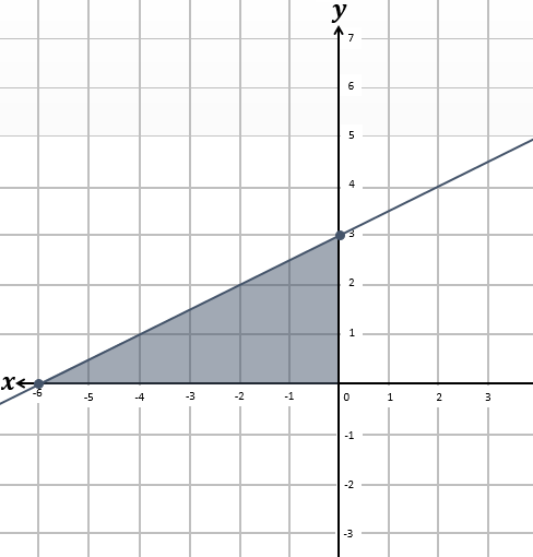 Dari gambar, kita peroleh bentuk segitiga dengan alasnya 6 satuan dihitung dari titik asal ke titik potong sumbu-