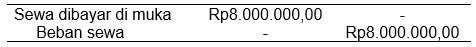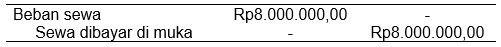 mendebit beban sewa dan mengkredit sewa dibayar di muka Rp8.000.000,00