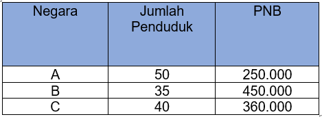 dari data diatas negara yang memiliki pendapatan perkapita terbesar adalah..