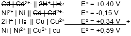 Cd | Cd2+ || Ni2+ | Ni E0 = +0,15 V